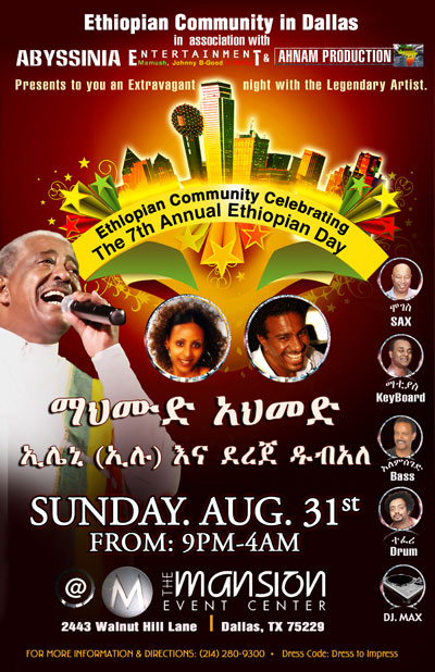 The Ethiopian Community in Dallas, in association with Abyssinia Entertainment and Ahnam Production presents an extravagant night of music with the legendary artist Mahmoud Ahmed.