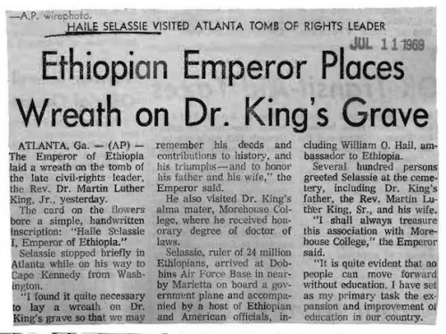 Emperor Haile Sellassie laying wreath at Dr. King’s grave. July 11, 1969. AP Photo courtesy of private collector in New York.